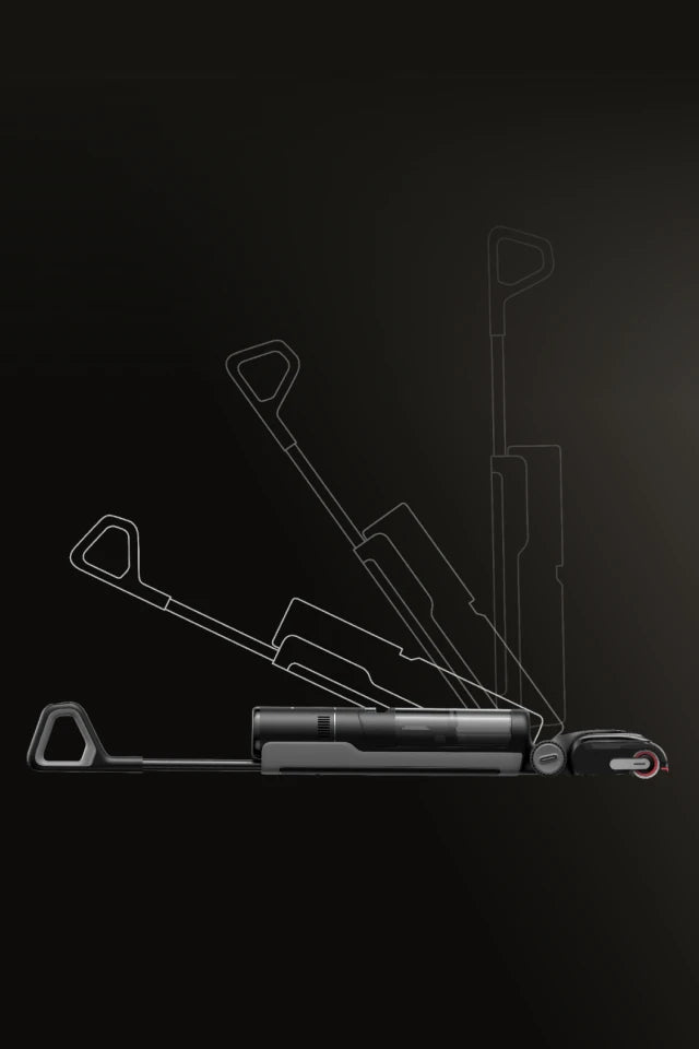 Terwijl u de stofzuiger naar achteren trekt, drukt de robotarm stevig tegen de vloer om achtergebleven nat en droog vuil eenvoudig te verwijderen.