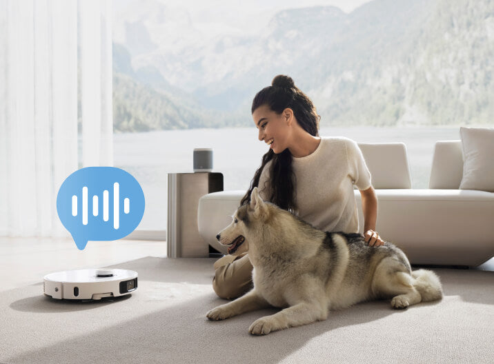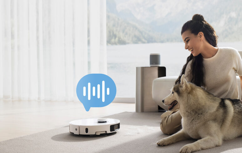 Pas de schoonmaakmethode aan met spraakopdrachten* of synchroniseer met Alexa, Siri en Google Home** voor gepersonaliseerde bediening. Start en pauzeer taken of voer deze uit, zoals het in kaart brengen van ruimten of het vermijden van zones, middels eenvoudige spraakopdrachten.