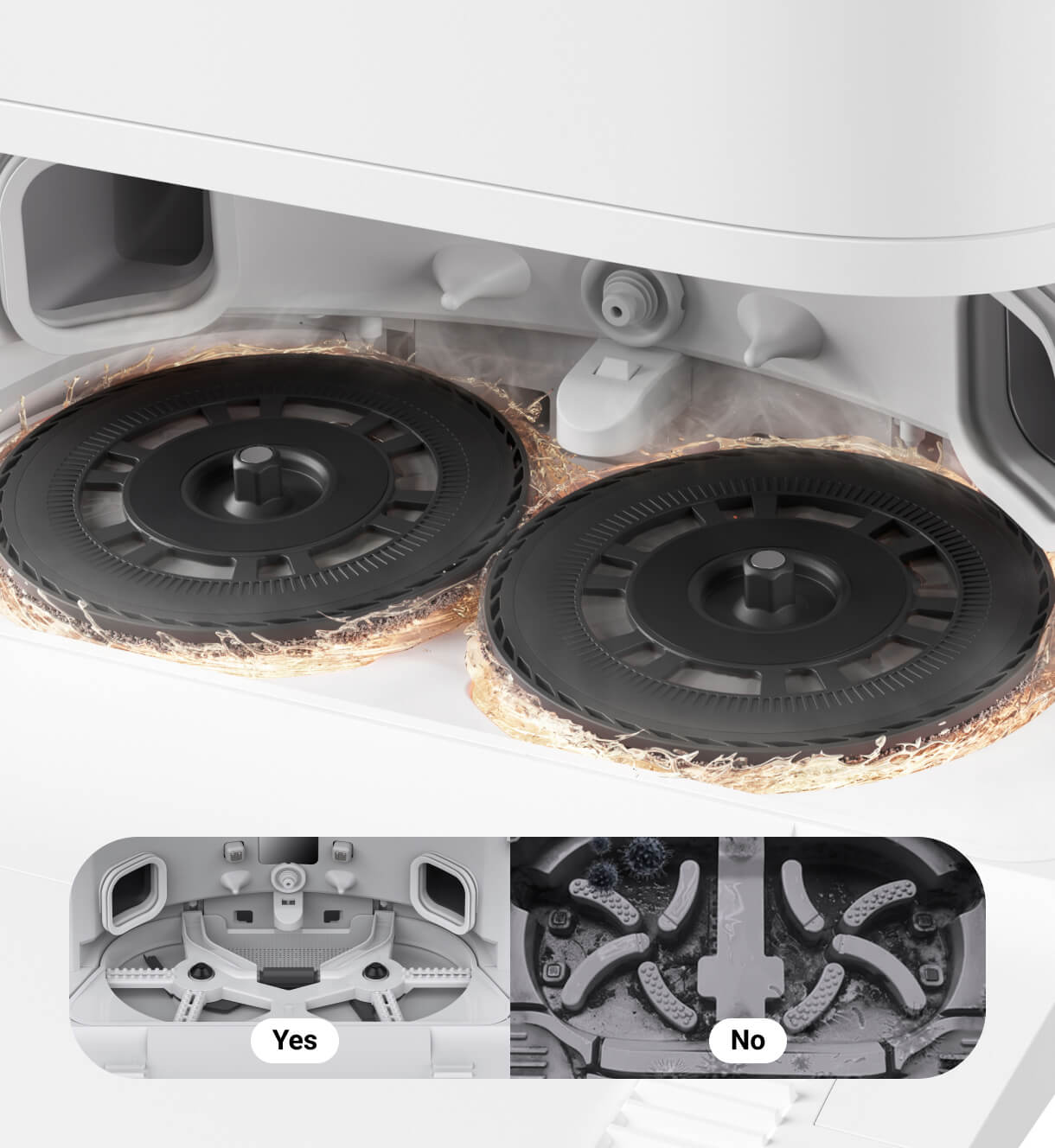De troebelheidssensor meet hoe vuil gebruikt water is, om de dweil opnieuw te wassen en hardnekkige vlekken continu te verwijderen. Vervolgens dweilt de L40 Ultra de vloer nogmaals, waardoor deze fris en glanzend blijft.
