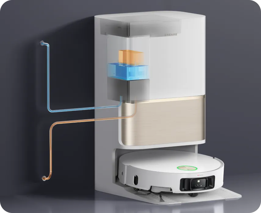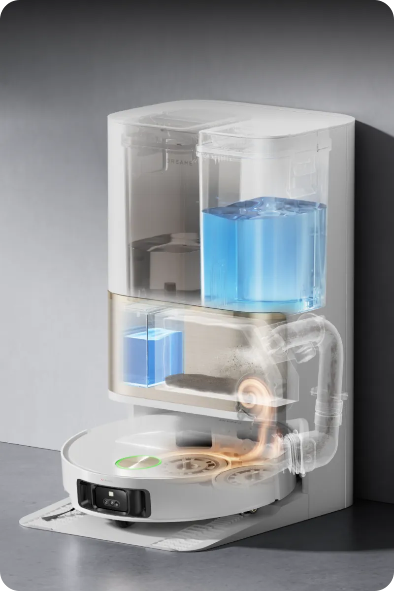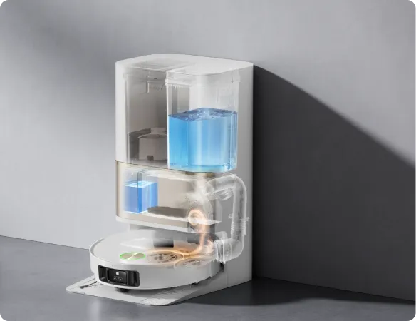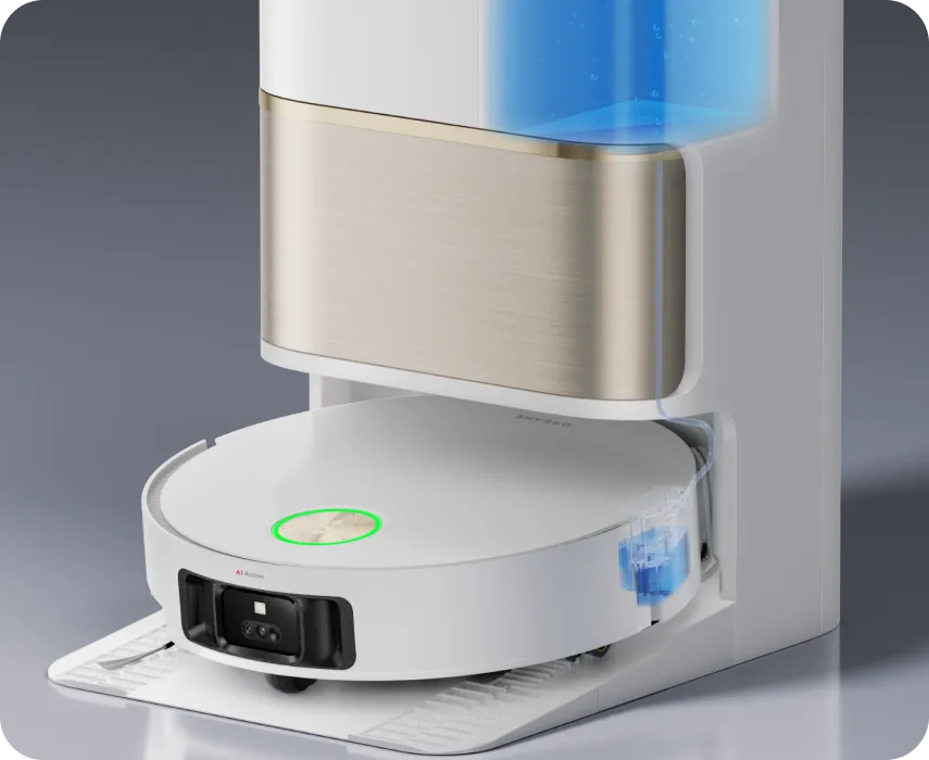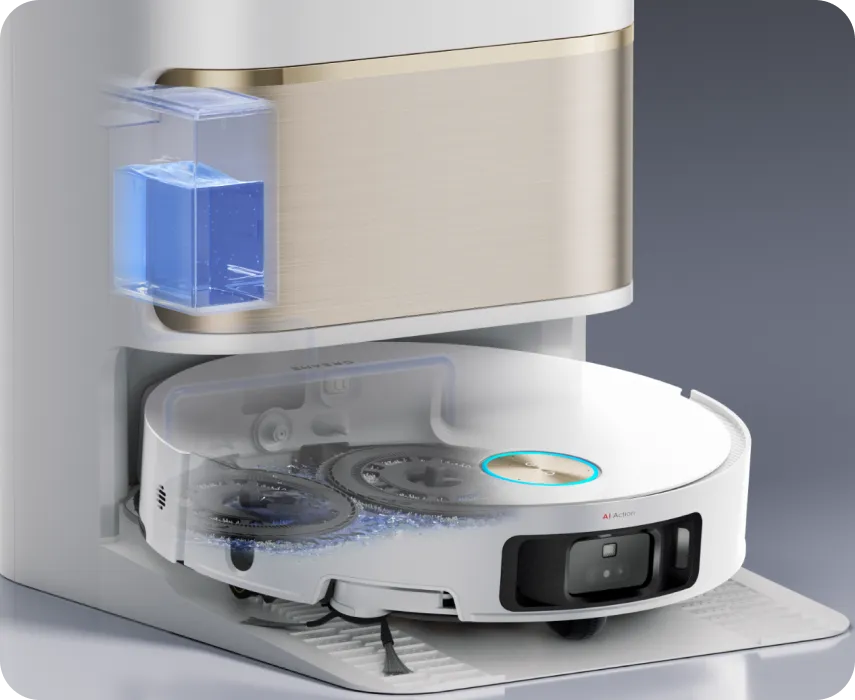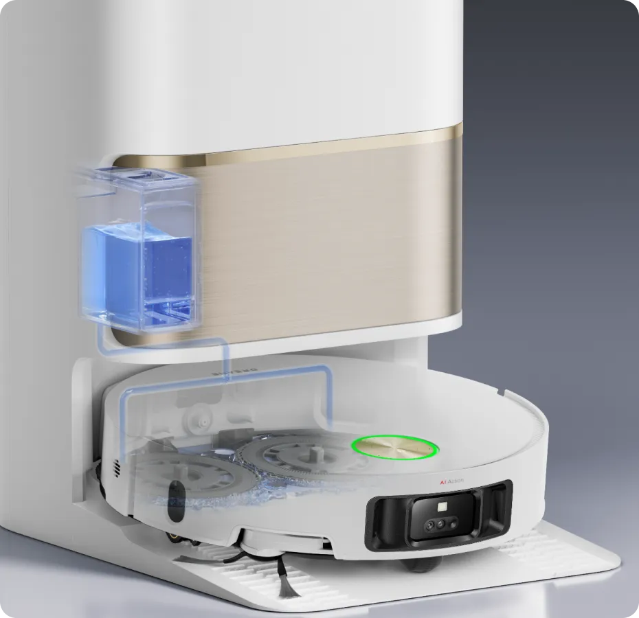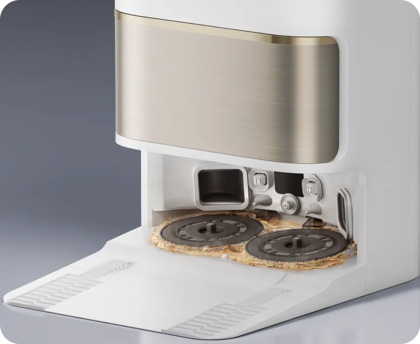 Met behulp van een kleursensor beoordeelt de L50 Pro Ultra het vuile water na het dweilen. Als het water te troebel is, past de robotstofzuiger het watervolume aan middels 32 niveaus om de dweilpads grondig te reinigen. Daarna is de L50 Pro Ultra klaar om uw vloeren twee keer te schrobben, voor een vlekkeloze afwerking.