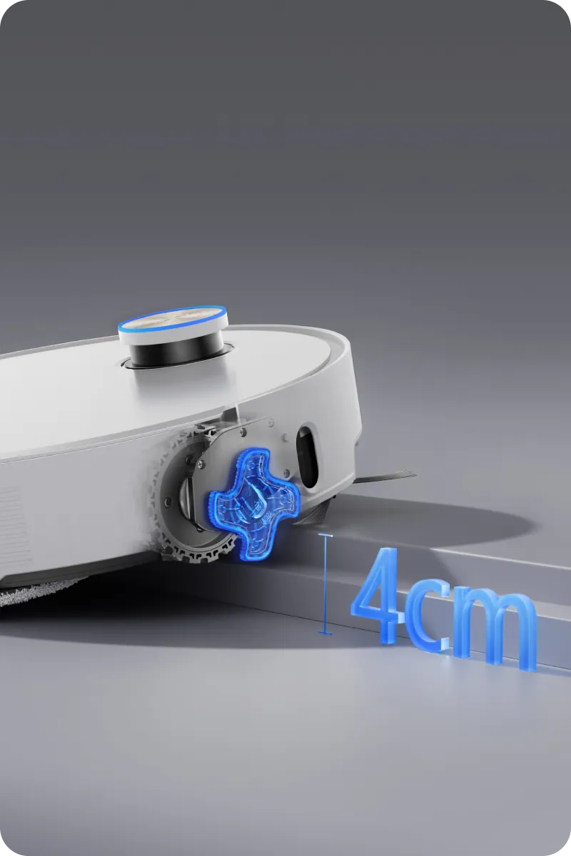 *4 cm: Verwijst naar de hoogte van een dubbele drempel. Voor het navigeren van één obstakel en één verticale trede is de hoogste obstakelhoogte bij kruisen 2,2 cm. De afstand tussen de treden moet groter zijn dan 3 cm. Gebaseerd op onze interne laboratoriumtests. De werkelijke resultaten kunnen variëren, afhankelijk van omgevingsfactoren.
