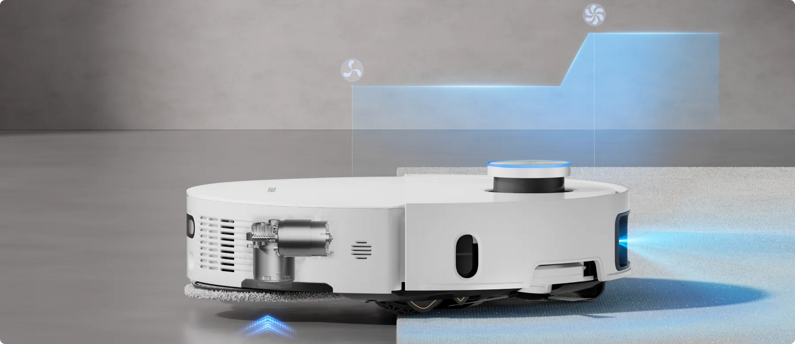 *Zuigkrachtboost: deze modus is beschikbaar in de Dreamehome-app. Zodra het tapijt is gedetecteerd, zal de robotstofzuiger stofzuigen met maximale zuigkracht. Niet beschikbaar in de stille zuigmodus.