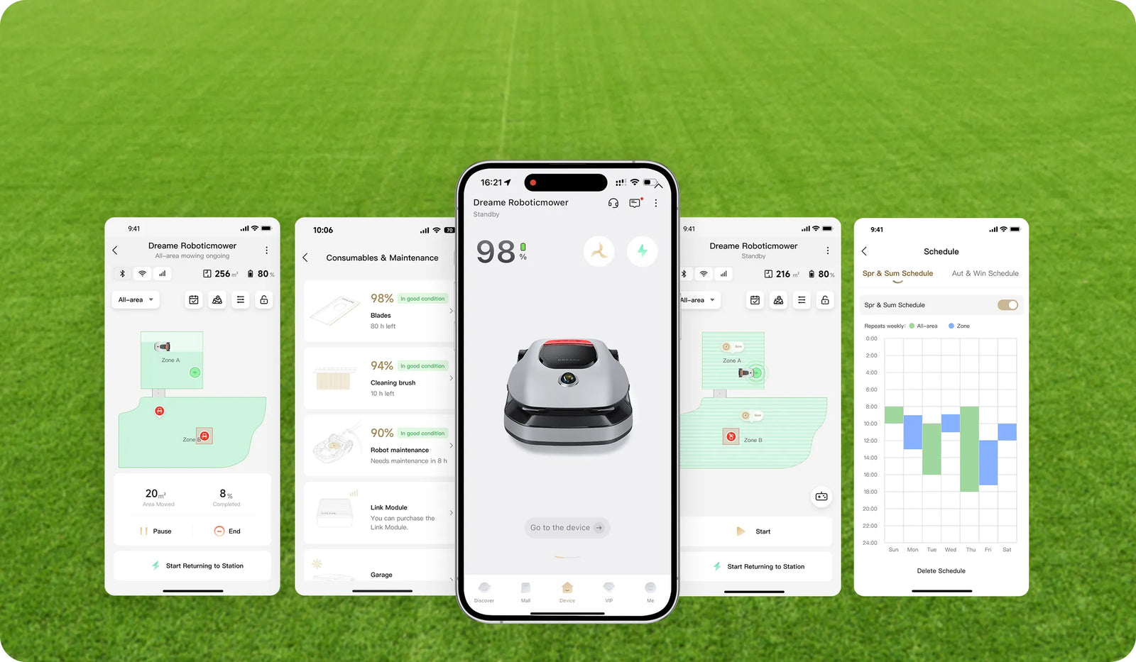 De A1 Pro is perfect voor woningen met een gescheiden voor- en achtertuin. U kunt 2 onafhankelijke kaarten maken en beheren. Pas voor elk gebied de maaiplannen aan, zodat u tijd bespaart en geen extra maaier nodig hebt. Dit is ook ideaal voor eigenaren van meerdere huizen.