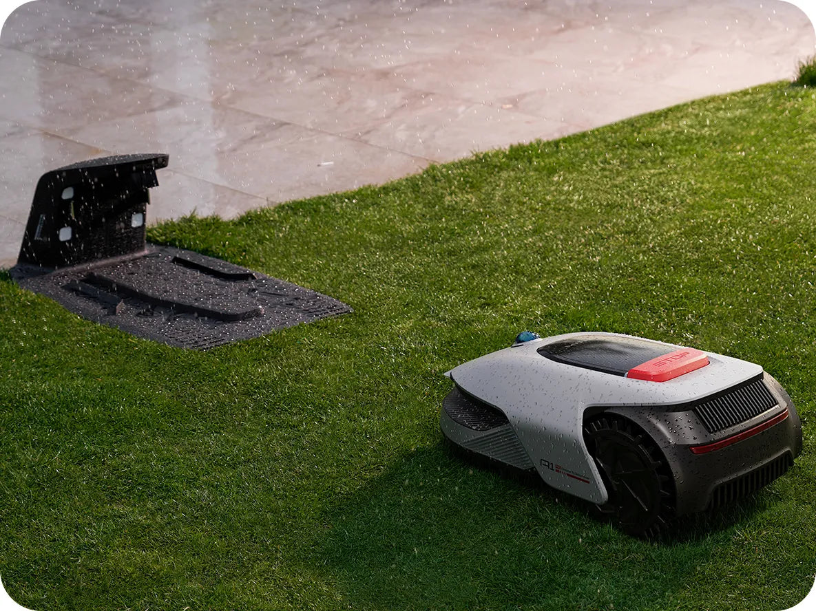 Wanneer regen wordt gedetecteerd, keert de A1 Pro automatisch terug naar het oplaadstation en wordt het onderbroken maaien hervat wanneer de regen stopt.