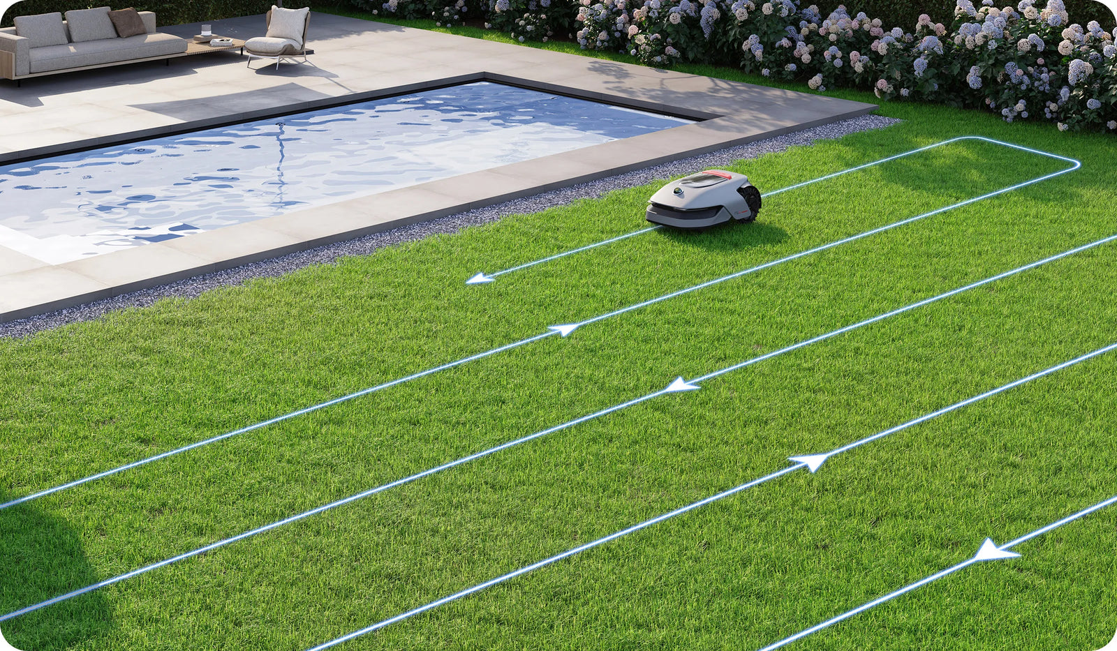 Of de A1 Pro nu in de modus voor randmaaien, zonemaaien of het maaien van het volledige gebied staat, de A1 Pro maait automatisch tot aan de aangegeven randen, wat zorgt voor nauwkeurig maaien van de randen, waardoor onberispelijk schone en nette gazonranden ontstaan.