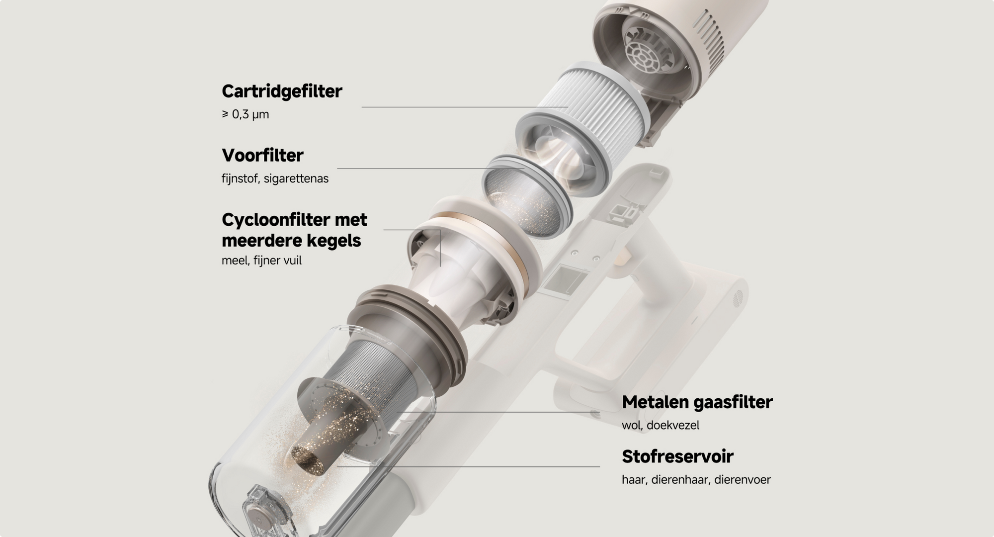 *40 minuten: gebaseerd op tests in het laboratorium van Dreame, in de Eco-modus met het combinatiehulpstuk. De werkelijke looptijd kan variëren, afhankelijk van de gebruiksomstandigheden.