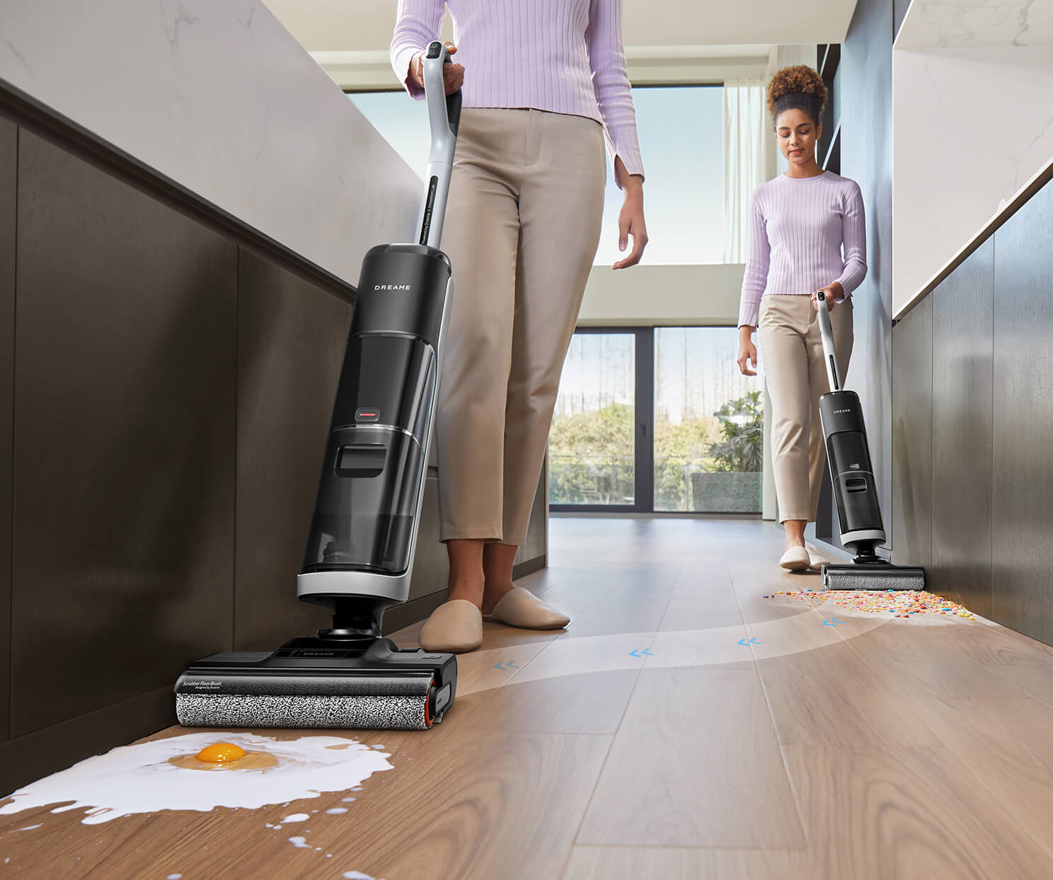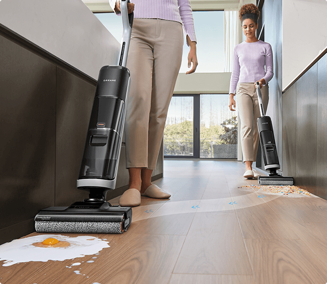 ¹180°, 14 cm, 9,8 cm: De hele behuizing van de stofzuiger kan ruimtes tot 14 cm diep bereiken en de borstelkop tot 9,8 cm diep, gebaseerd op testgegevens van Dreame Lab.