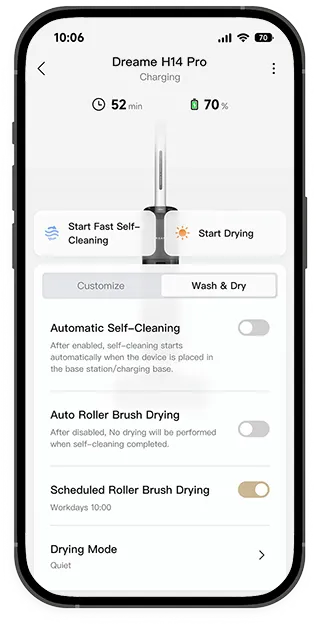 ¹⁰Drogen met hete lucht van 60 °C: Onder omstandigheden met een temperatuur van 20-25 °C en 45% RH, gebaseerd op testgegevens van Dreame Lab. Werkelijk gebruik kan variëren.