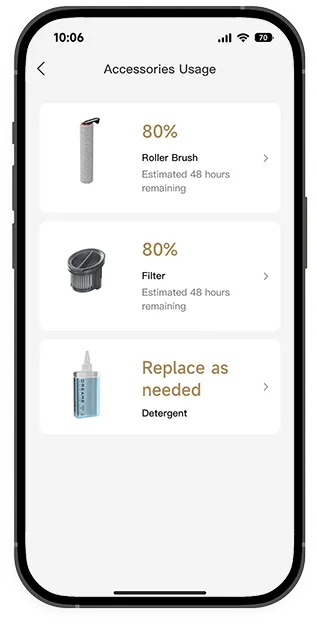 Blijf het onderhoud voor met meldingen over vervanging van filters en reiniging van borstels.