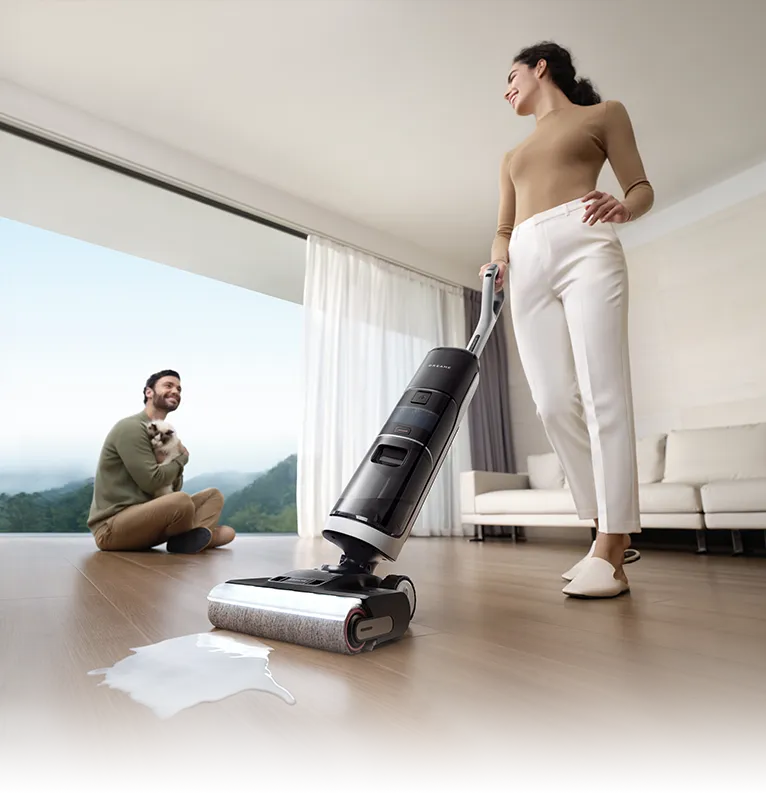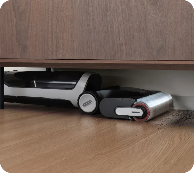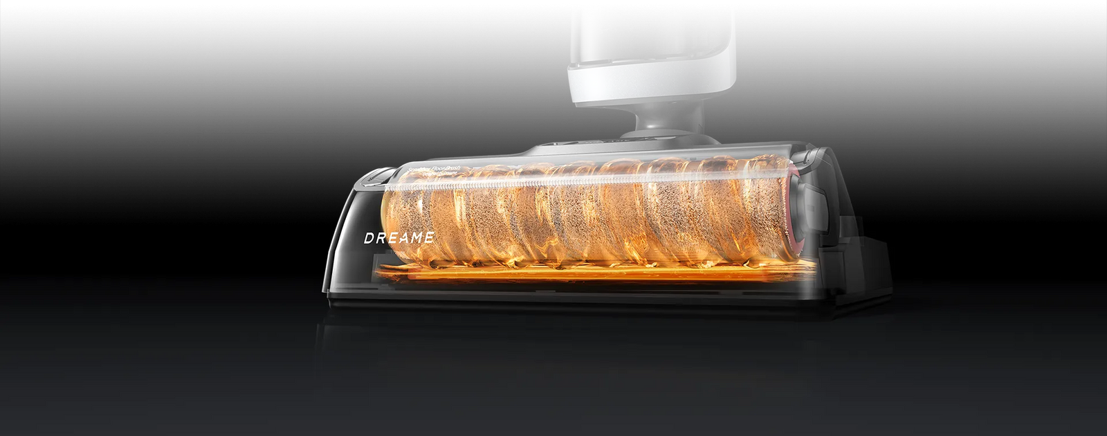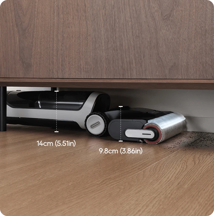 ¹180°, 14 cm, 9,8 cm: De gehele behuizing van de stofzuiger kan ruimtes tot 14 cm diep bereiken en de borstelkop tot 9,8 cm diep, gebaseerd op testgegevens van Dreame Lab.