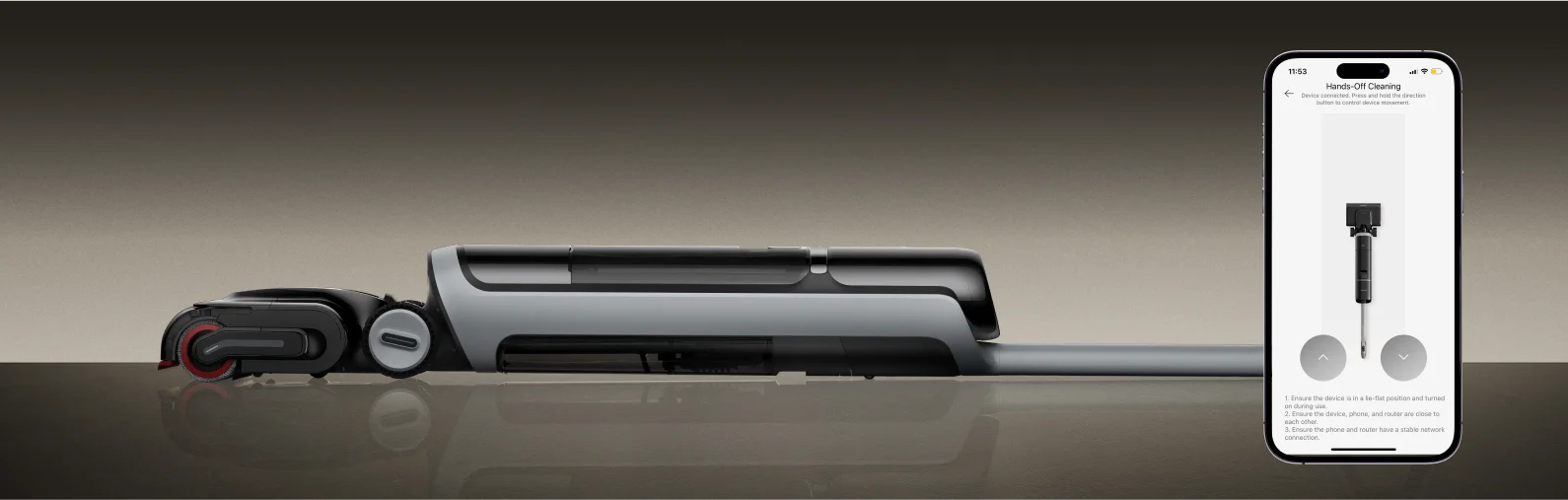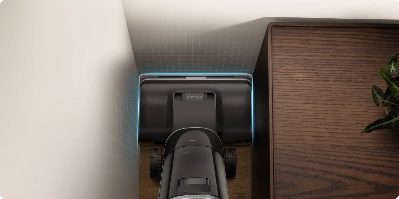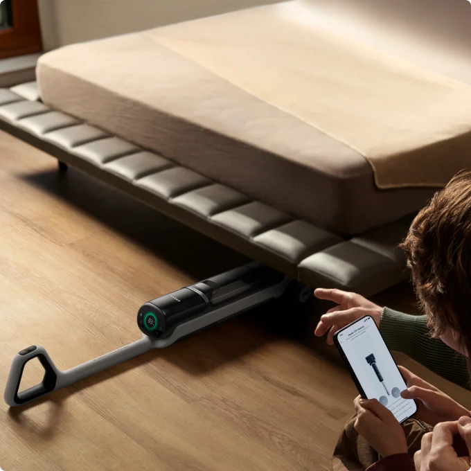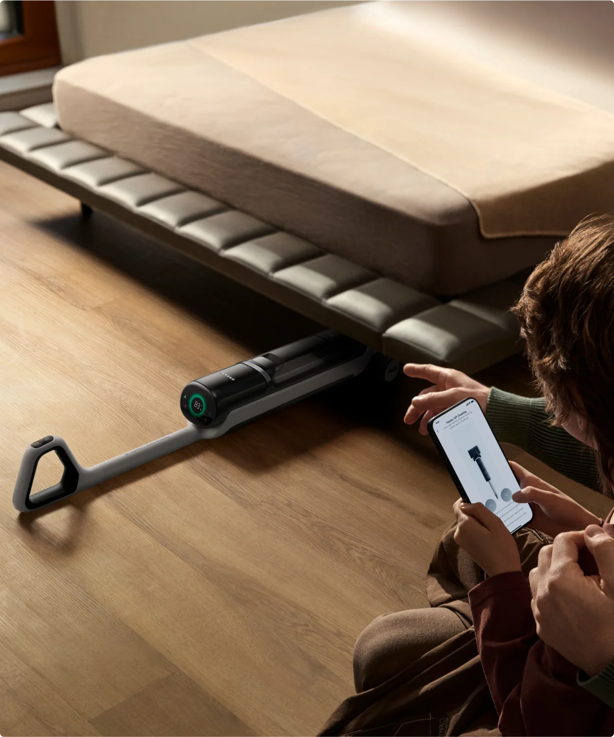 Navigeer uw stofzuiger via de Dreamehome-app en bedien hem als een robotstofzuiger om lage, verborgen ruimten schoon te maken.