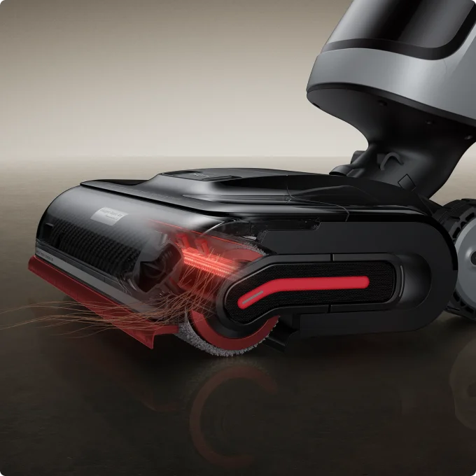 De RGB-sensor van de H15 Pro Heat is actief tijdens het reinigen van de vloer en is onderdeel van het intelligent zelfreinigend systeem. De sensor detecteert de hoeveelheid vuil op de borstel en in de voet, en past zich aan. Dit maakt grondige zelfreiniging mogelijk, waarbij achtergebleven vuil snel van de rolborstel wordt verwijderd.